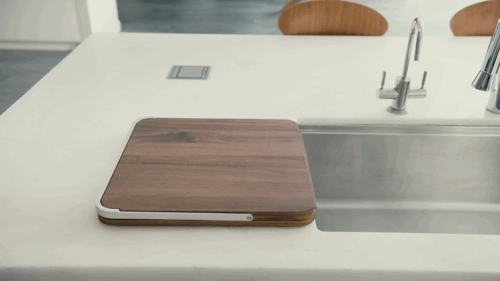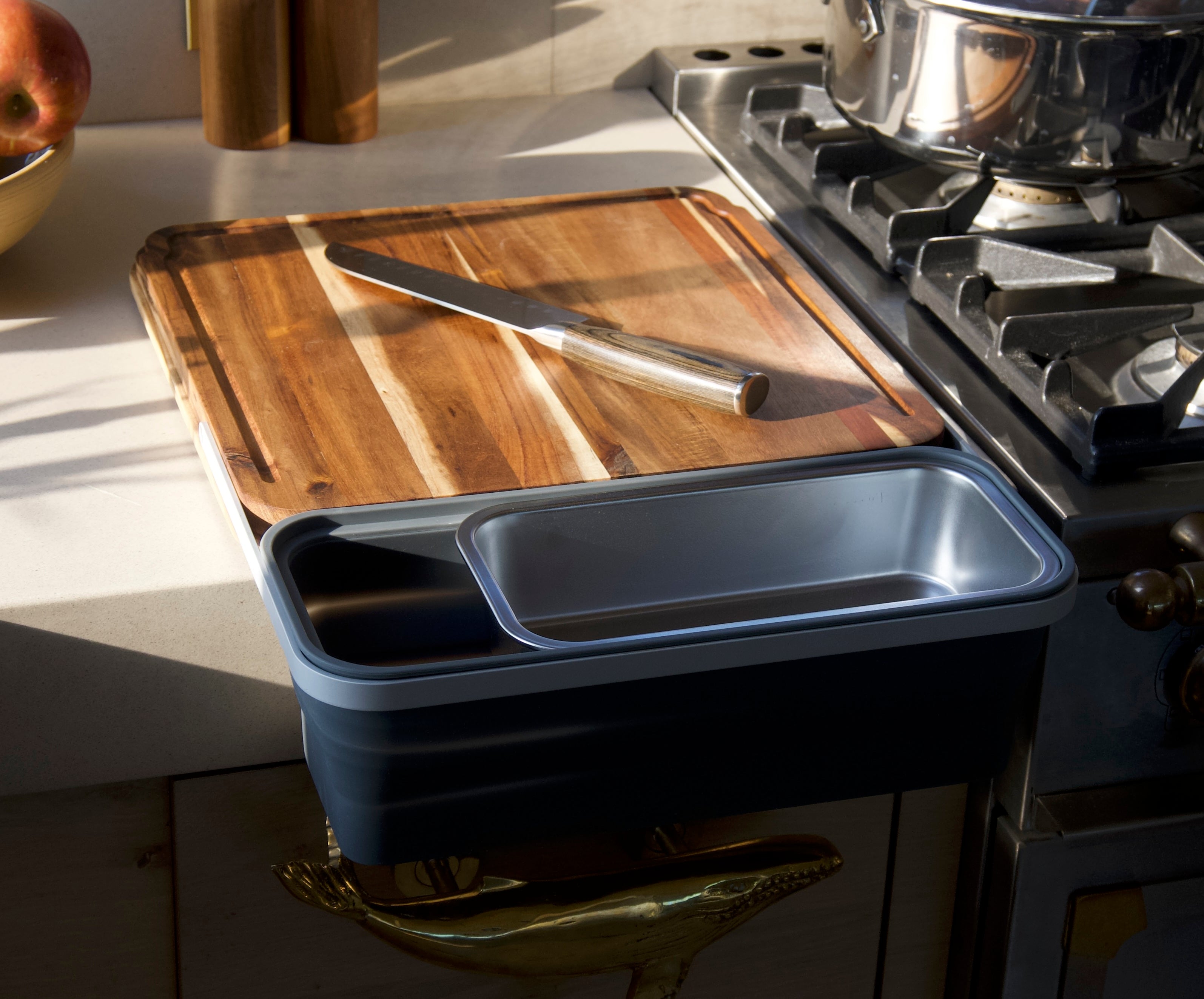 The hanging design and collapsible containers maximize countertop space and make food prep fast and fun! By hanging off the edge of the countertop or over the sink, TidyBoard utilizes previously unused space.