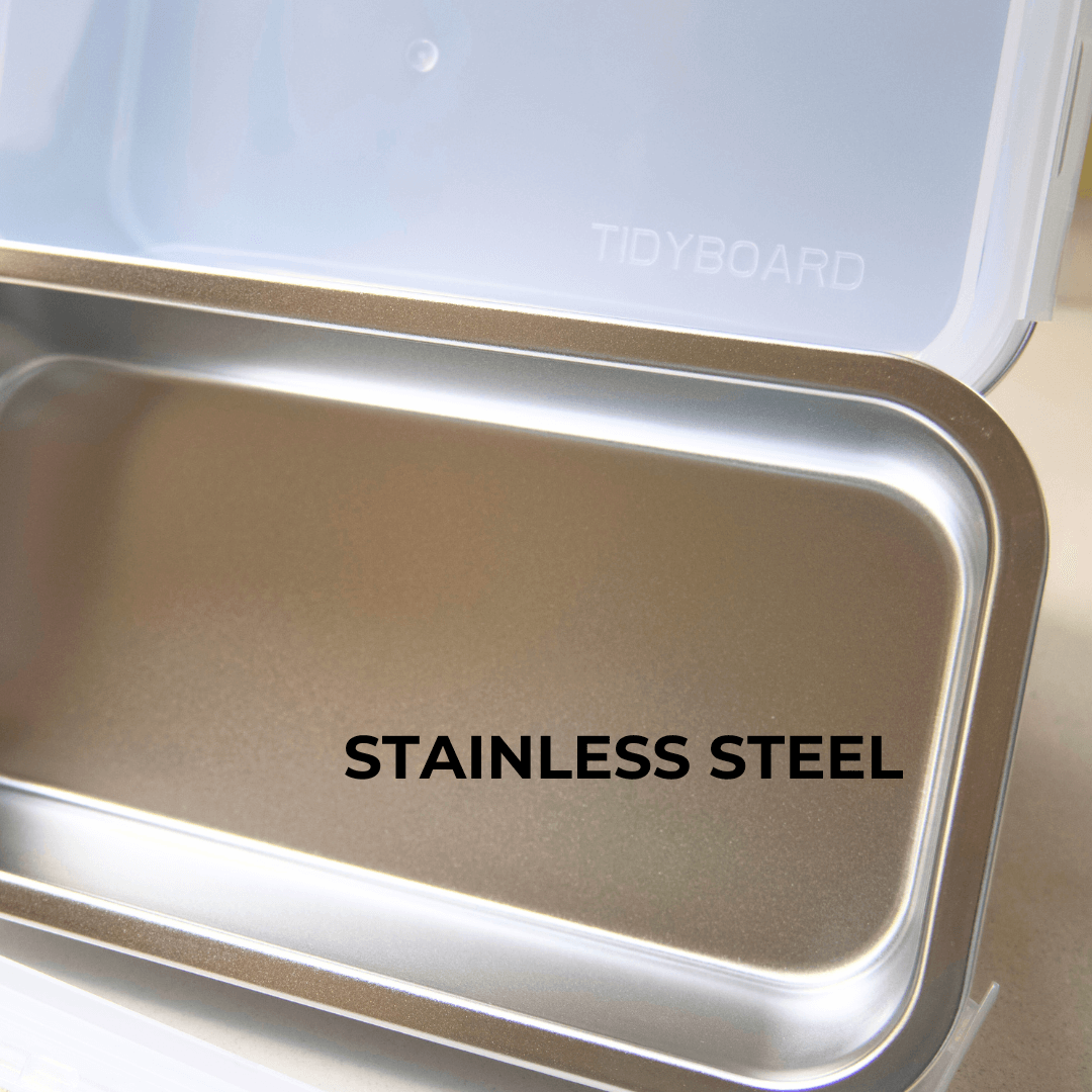 The TidyBoard was mindfully influenced by math and physics. Our board is engineered as a lever to stay steady even with a heavy load in the containers. It can hold up to 9 lbs of food in its container while hanging off your counter.